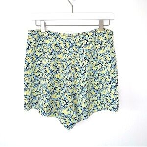 Equipment Femme Lewis Silk Floral Shorts in Blue Yellow Green high waist medium