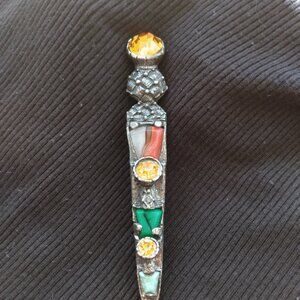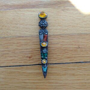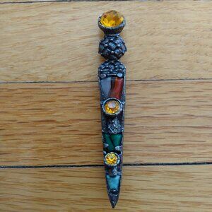 Vintage Dagger Brooch Scottish Sword Dirk Kilt Pin with Semi Precious Stones