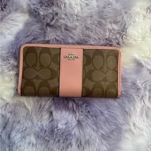 Coach Signature pink and brown Zip around wallet