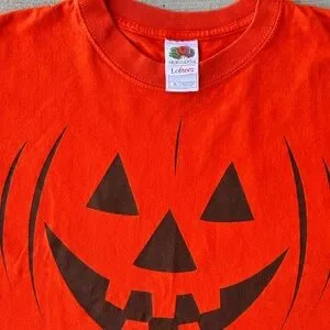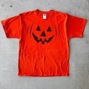 Y2K 2000s Men’s Orange Pumpkin Halloween Graphic Tshirt (XL)