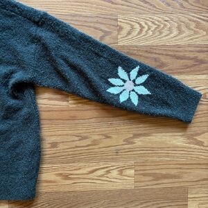 Sprinkled with knit-right-in intarsia flowers, this comfy