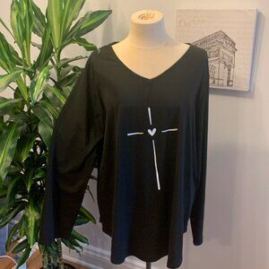 Nwot Long Black Short Sleeve Tee With White Cross And Heart