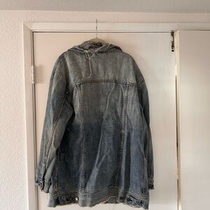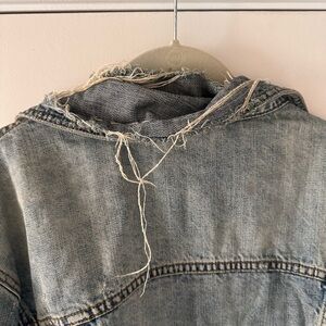 Stylish distressed denim jacket. Features a relaxed fit and classic button front. Ideal for casual wear. Previously loved!