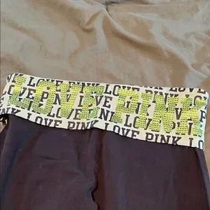 Victoria's Secret Black Leggings with White Love Pink Waistband