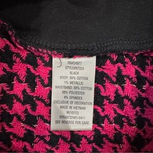 Adorable girls’ skirt in a bold pink and black houndstooth print with a stretchy black waistband and pretty lace trim at the hem. Eye-catching and fun, perfect for parties, holidays, or everyday wear.