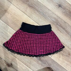 Girls Pink & Black Houndstooth Skirt Lace Trim Size 6 (Estimated)