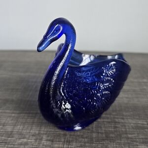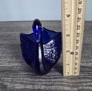 Fenton Cobalt Blue Swan Bird Collectible Glass Candy Trinket Ring Dish