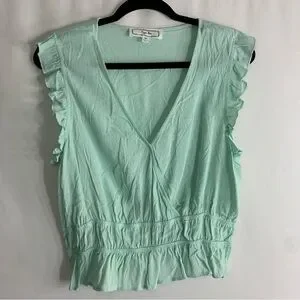 NWoT Hippie Rose Mint Green Sleeveless Ruffle V Neck Top, Size XL