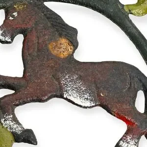 * Sturdy iron construction with rustic farmhouse and equestrian appeal