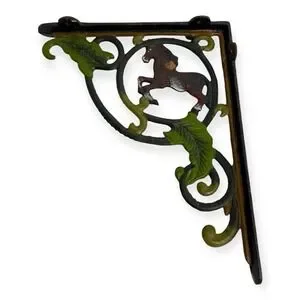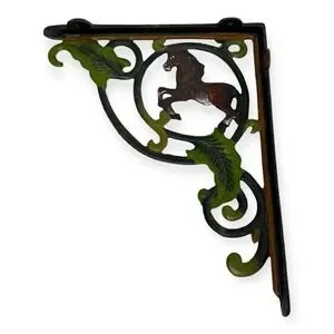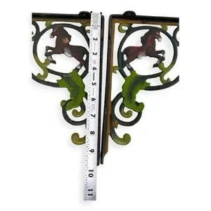 * Pair of vintage 1970s painted cast iron shelf brackets featuring a jumping horse design
