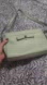 previously used but well cared for Kate Spade bag, mint green with front button pocket and zipper pocket inside. scuff on back, see photos
