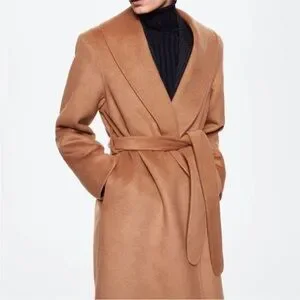 Iconic Mango 76% Wool Handmade Belted Coat Old Money