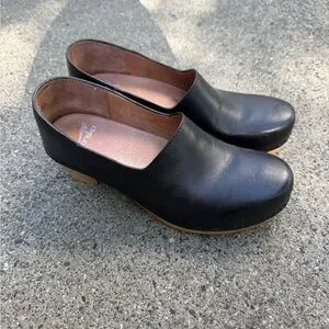 Dansko Black Leather Slip-On Shoes
