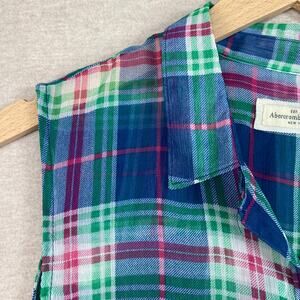 Y2K Abercrombie & Fitch Womens Sleeveless Button Up Top Size L Preppy Moose Logo