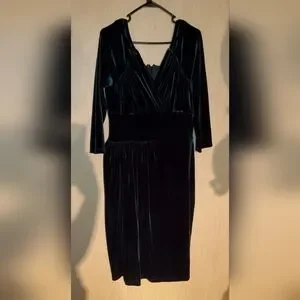 Vixen by Micheline Pitt Startlet Wiggle in Hunter Green Velvet, Size 2x GUC