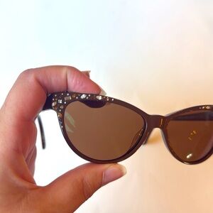 Lenses have been upgraded to a Plano (non prescription) brown polarized lens with anti glare.Elevate your style with these chic Bebe sunglasses. Featuring a rich brown chocolate frame adorned with sparkling rhinestones, these sunglasses are perfect for any occasion. Stay fashionable and protected from the sun.