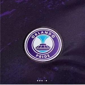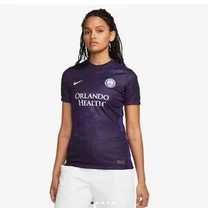 Dark purple Nike jersey with Orlando Pride emblem. Stylish and comfortable.