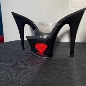 7" (17.8cm) Heel, 2 3/4" (7cm) Platform Slide Featuring Rhinestone Covered Heart In the Platform