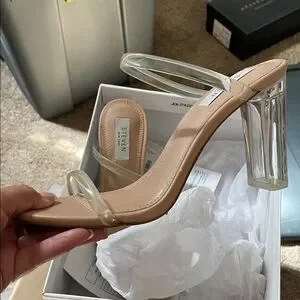 Elegant Steven heels in a nude shade with chic transparent straps. Perfect for elevating your style.