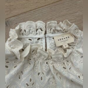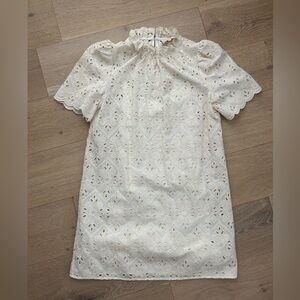 Sézane Louison dress; white lace; cotton; keyhole closure in the back; lined with removable slip dress; France size 38, which is about a US 6; in excellent condition.