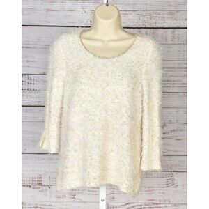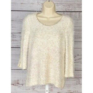 Chico's Ivory/Gold Fuzzy Soft Sweater Chicos Size 0 / US S- 4