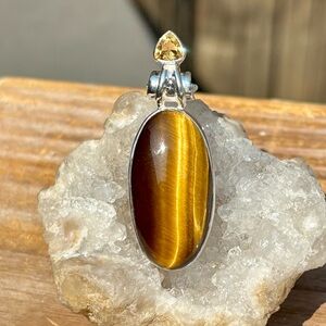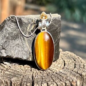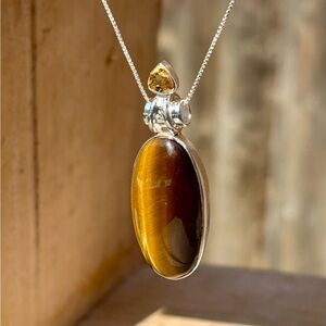 Gorgeous tiger eye and genuine citrine pendant necklace