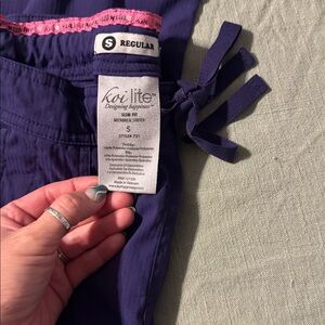 Small, purple Koi Lite cargo scrub pants. Smoke free home. Small blemish on cargo pocket (picture shown)