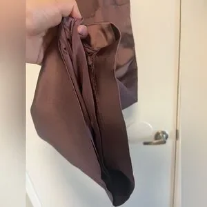 Has stretch, lining and back zipper.
