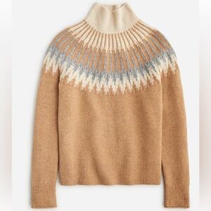 J. CREW Sz Large Fair Isle Mock Neck Sweater Supersoft Yarn Wool Camel Blue EUC