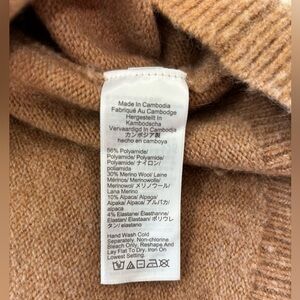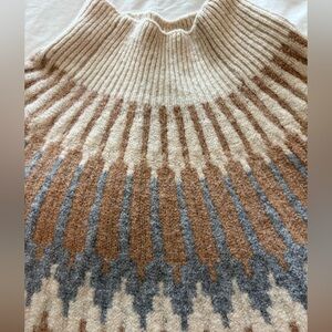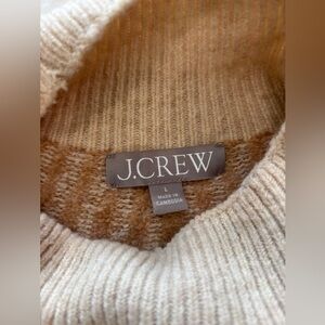 Gorgeous J Crew Sweater in size large. Camel or tan, blue, and Ivory fair isle design. Wool blend.