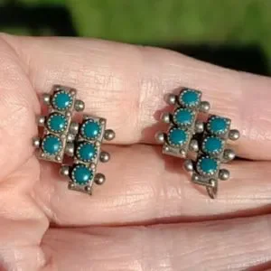 Vintage Native American Sterling Silver Turquoise Earrings Screwbacks