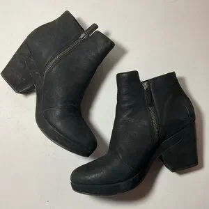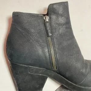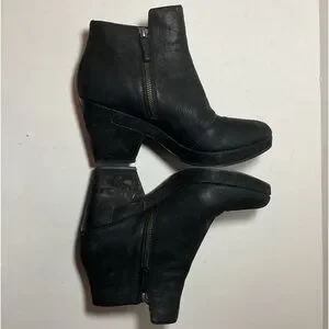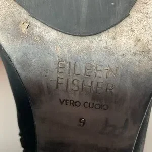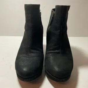 Eileen Fisher Black Leather Booties. Size 9. Pre-owned in good condition. Side zippers. Leather uppers, leather soles. Made in China.