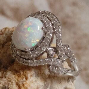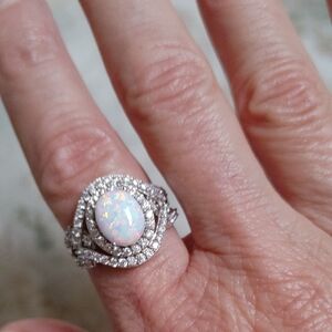 SJD 925 Opal and Diamond Pavers Ring Size 8