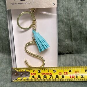 Modern Expressions Gold Letter S Teal Tassel Keychain NIB