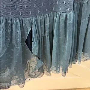 Blue satin (100% Polyester). A-line. Sleeveless. Strapless. Back zipper closure. 51.5" from shoulder to hemline. Imported.