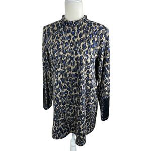 Tyler Boe Animal Print Tunic Top Long Sleeves Classic Timeless Blue Black Small