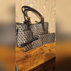 The bag also comes with matching accessories, including a stylish coin purse and an ID holder. The logo pattern adds a touch of sophistication to the overall design, while the black hardware color complements the black exterior material. This shoulder bag is a must-have for any fashion-forward woman and is sure to turn heads wherever you go. Measures approximately 14 1/2"L × 5"W × 8" H handle drop is approximately 10"