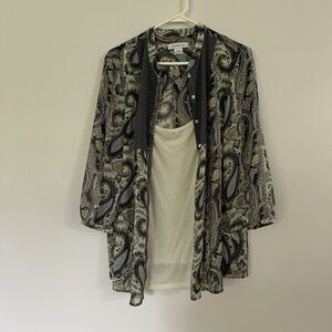Liz Claiborne XL Long Sleeve Blouse Attached White Tank Paisley Casual Boho Chic