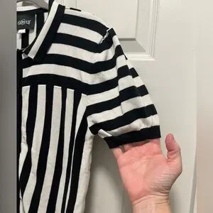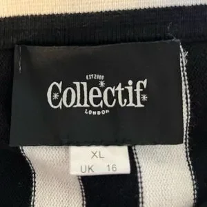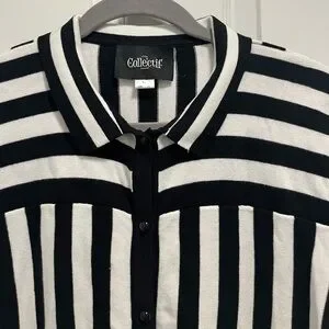 Collectif Lailie Striped 60's Cardigan Black White Buttons - 2X - EUC