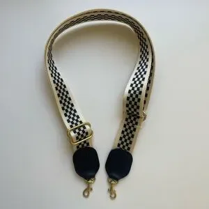 Clare V Adjustable Strap, Black | Cream Checker with Black Tabs, Nearly New!