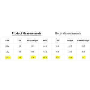 Could you provide measurement from pit to pit, waist, hip, sleeve length? Approx amount of stretch (1”, 2”, etc)? Thank You