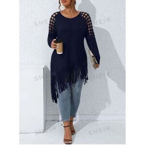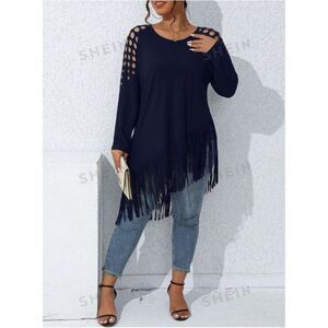 SHEIN LUNE Plus Cut Out Shoulder Fringe Hem Tee