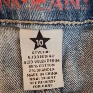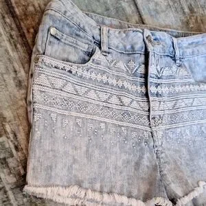 Celebrity Pink Light Blue Jean Shorts with Intricate White Pattern. Size 10