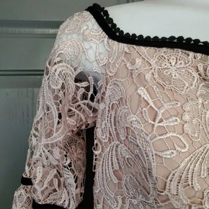 Fairy Princess Guipure lace babydoll Tunic blush Top with Bell Sleeves