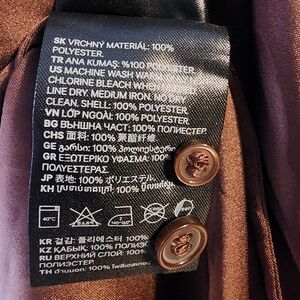 H&M Tunic Chocolate Brown Silky Band Collar Button Up Long Sleeve Large Cuffs