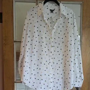 NWT Ann Taylor Classic Shirt Polka Dots Size Large