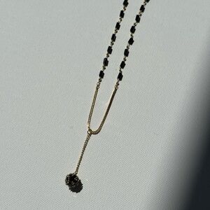 Elevate your everyday look with this chic Zara-inspired necklace. Designed with sleek black beads and a delicate gold-tone chain, it features a modern asymmetrical pendant detail for an effortless touch of elegance. Perfect for layering or wearing solo, this piece adds contemporary sophistication to any outfit.