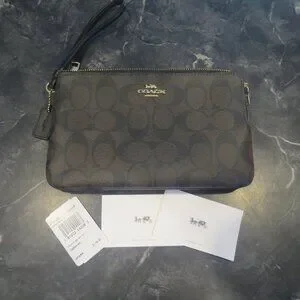 Coach Signature Brown Double Zip Wristlet Wallet Two Compartment NWT (B1)