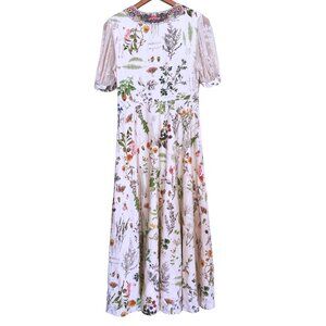 Anthropologie Women’s XS Donna Floral Embroidered Cream Midi Dress Cottagecore