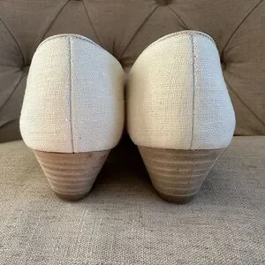 Vintage 90s Salvatore Ferragamo cream linen bow toe kitten heels women’s 7 1/2